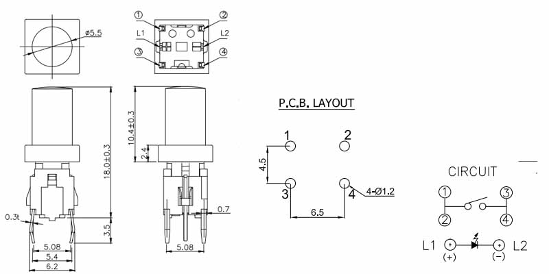 • 帶燈輕觸開(kāi)關(guān)TS1-00-6AR1-2C-2S