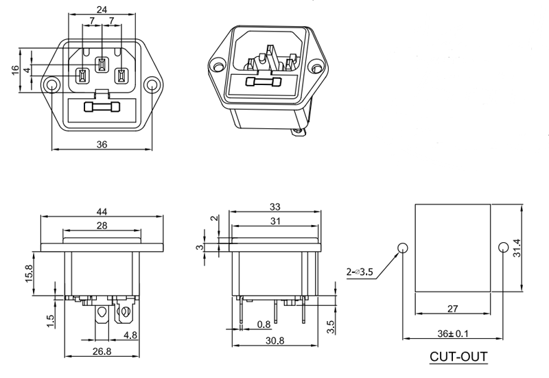 介紹:治具插座S-03系列,單插、二合一、三合一保險插座等多種規(guī)格,大電流10A ,15A,產(chǎn)品通過UL VDE CCC CB等認證,常見于家用電器,音響功放機等